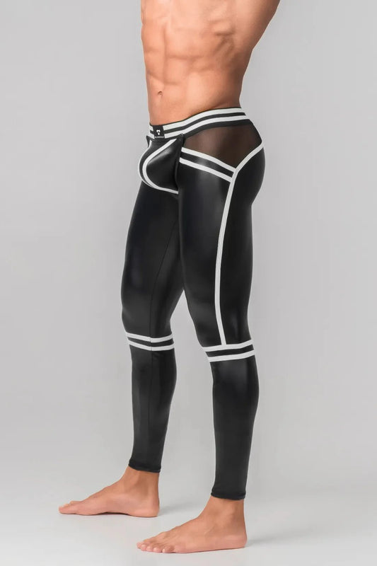 Men's Leggings. Codpiece. Zippered Rear. Black And White Neon