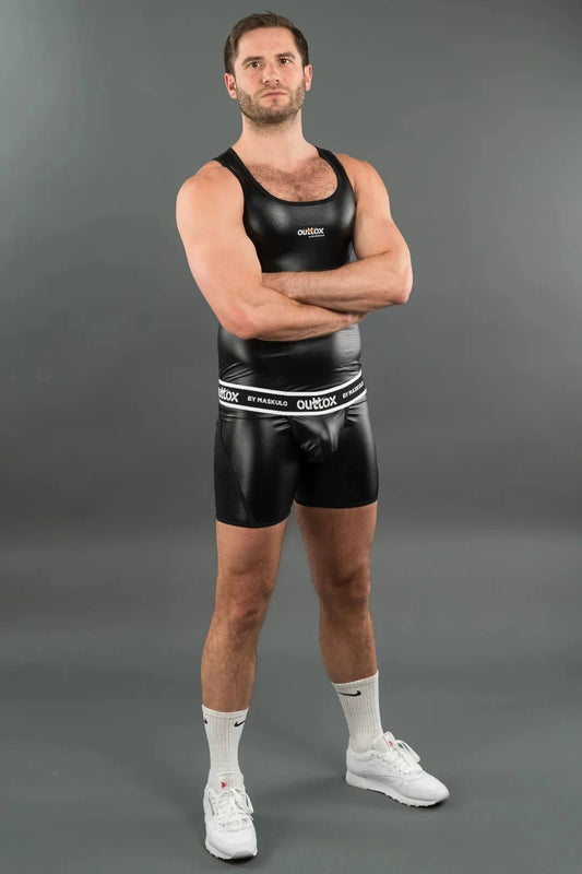 Warren Liquidoil. No-Zip Thin PU Leather Trunk Shorts. Black