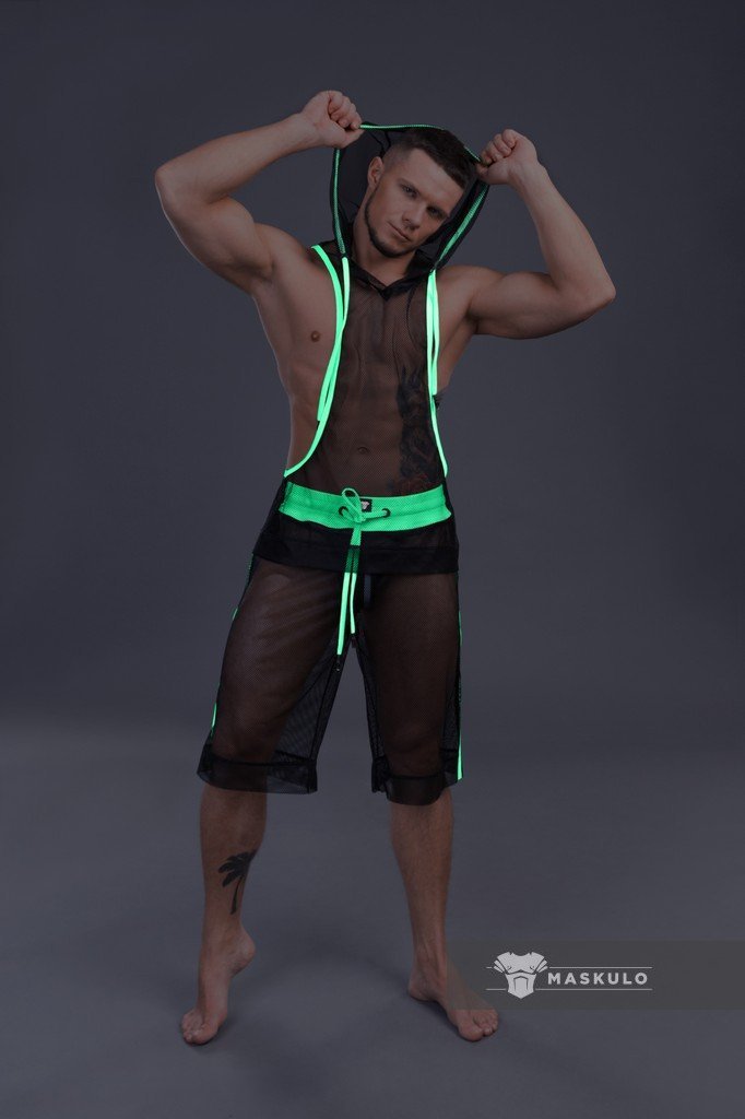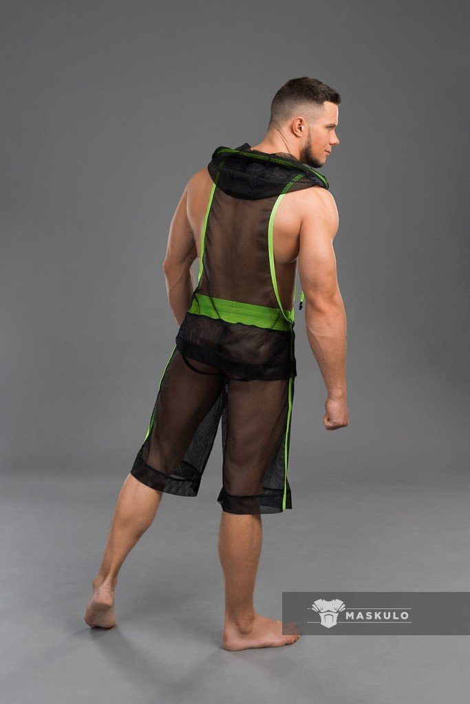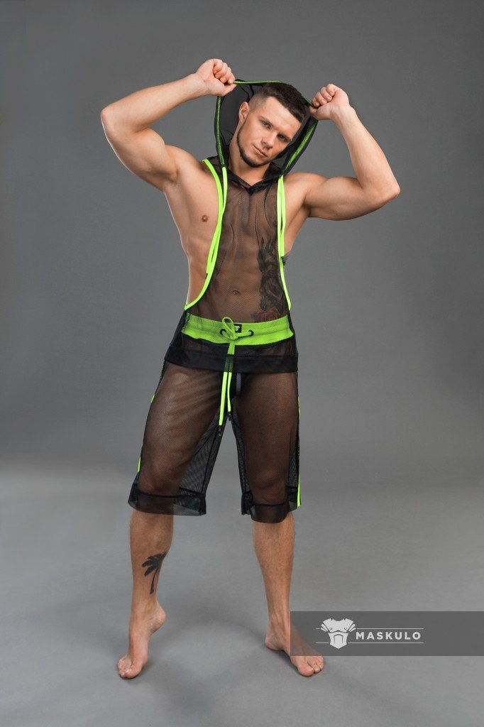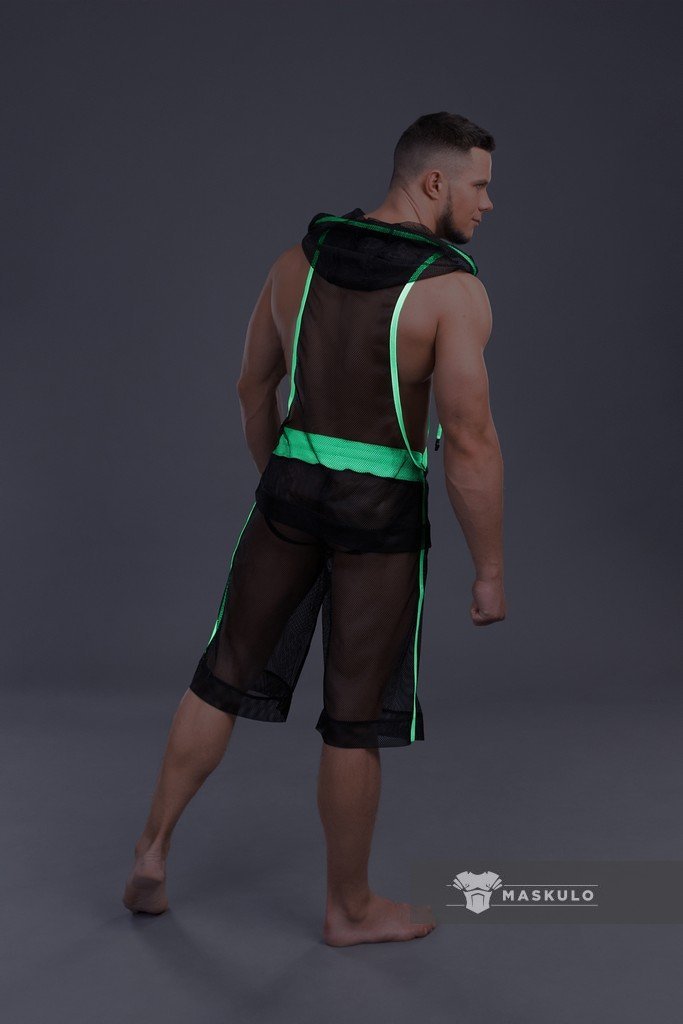 Mesh hooded tank top.